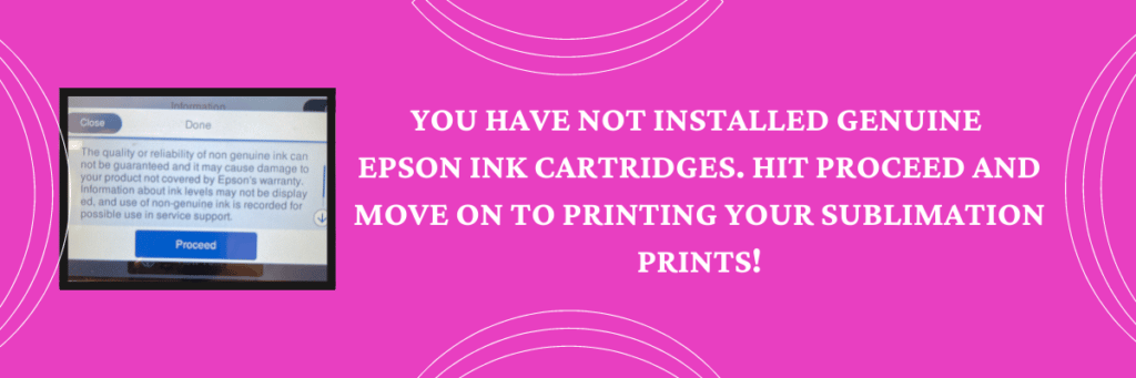 Not Installed Genuine Epson Cartridges (see above). Hit proceed and move on to printing you sublimation prints.